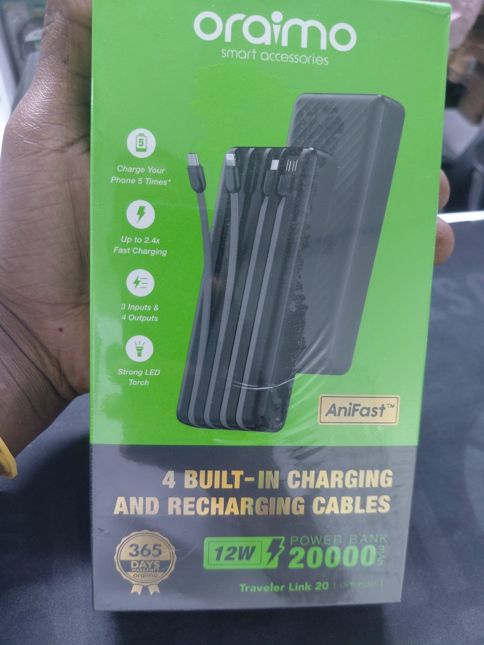 Be the first to review “Oraimo OPB-P5201 Traveler Link 20 20000mAh 4 Charging Cables 12W Power Bank” Cancel reply